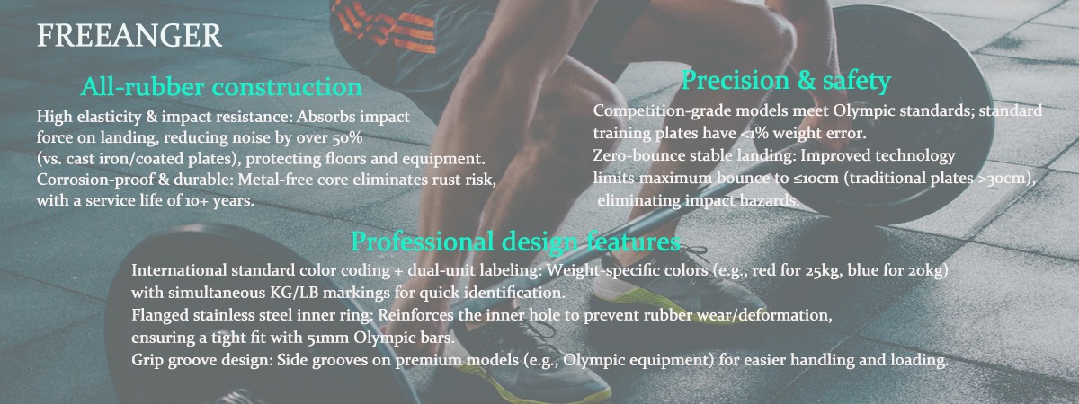 Placa de gimnasio comercial OEM de 45LB, mancuerna portátil, tecnología de caída sin vibraciones para cadenas de fitness, hecha de material de goma duradero